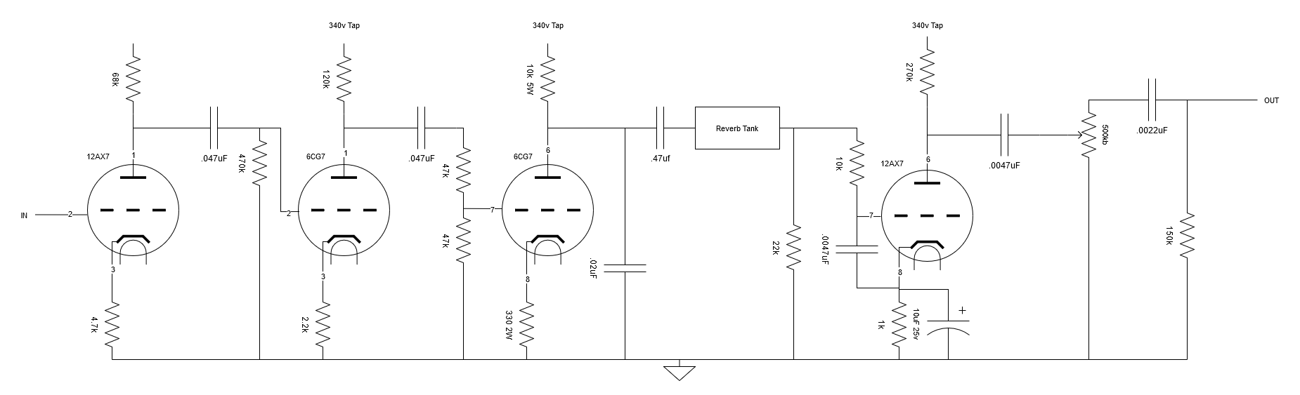 Silvertone 1484/1485 amps are legendary in their own right, but have undeniably poor reverb. If it works it is practically unusable. I play a lot of surf music so reverb is pretty important to me. My main amp is an Ampeg Gemini I which has the lushest, fullest reverb I have ever found. This page documents putting an approximation of the Ampeg Gemini I reverb circuit into a Silvertone 1484.
